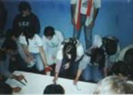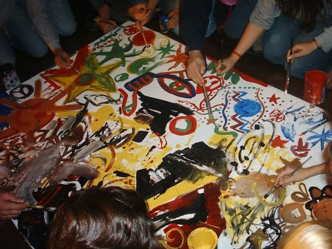 todos los presentes pintamos un gran mural multicolor como recuerdo de esa